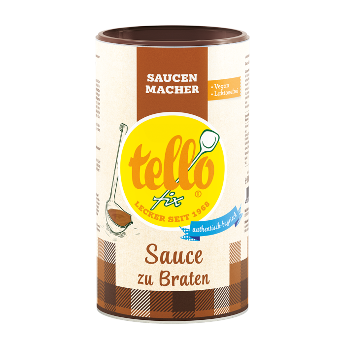 Die tellofix Sauce zu Braten überzeugt aber nicht nur durch ihren Geschmack, sondern auch durch ihre besonders einfache Zubereitung. Einfach einen Esslöffel Pulver in warmes Wasser einrühren, aufkochen und unter gelegentlichem Rühren köcheln lassen. Fertig ist die perfekte Soße! Als geheimes Helferlein kann sie aber auch zum Abschmecken, Verfeinern oder Binden vorhandener Saucen eingesetzt werden.